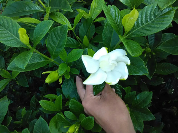 大花梔子為梔子花的變種。為茜草科梔子屬植物。為常綠灌木。單葉對生或3葉輪生。喜濕潤、溫暖、光照充足且通風(fēng)良好的環(huán)境??捎们げ濉簵l、分株或播種繁殖。