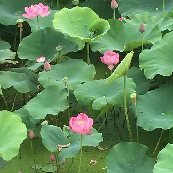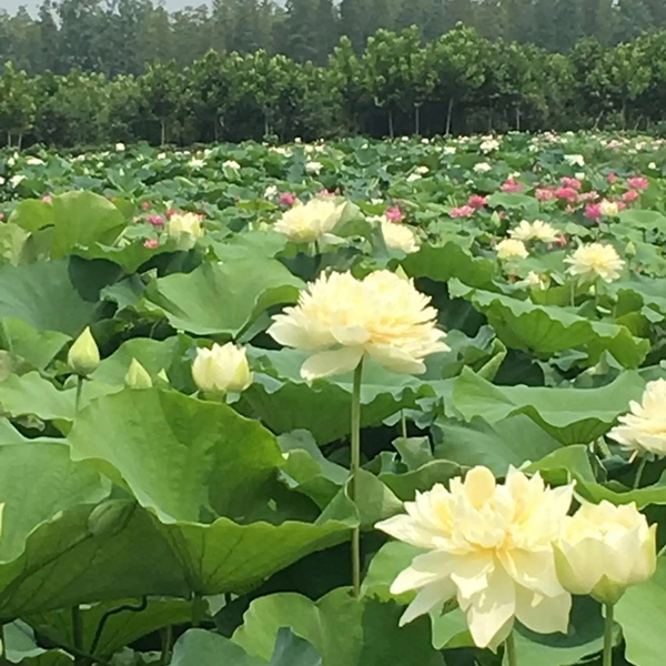 荷花種類很多,分觀賞和食用兩大類。原產亞洲熱帶和溫帶地區,中國早在周朝就有栽培記載。荷花全身皆寶,藕和蓮子能食用,蓮子、根莖、藕節、荷葉、花及種子的胚芽等都可入藥。其出污泥而不染之品格恒為世人稱頌?!敖犹焐徣~無窮碧,映日荷花別樣紅”就是對荷花之美的真實寫照。荷花“中通外直,不蔓不枝,出淤泥而不染,濯清漣而不妖”的高尚品格,歷來為古往今來詩人墨客歌詠繪畫的題材之一。